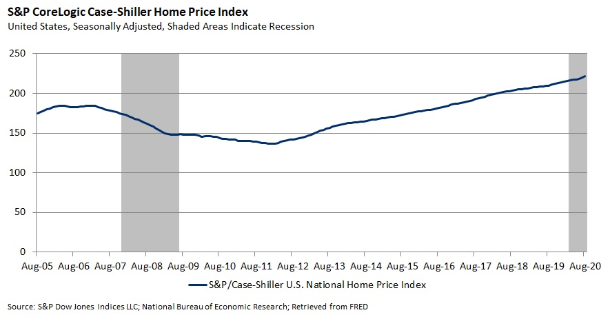 Phoenix, Seattle and San Diego reported the highest year-over-year gains among the 19 cities (excluding Detroit) in August. Phoenix led the way with a 9.9% year-over-year price increase, followed by Seattle with an 8.5% increase and San Diego with a 7.6% increase. All 19 cities reported higher price increases in the year ending August 2020 versus the year ending July. (S&P Dow Jones Indices )